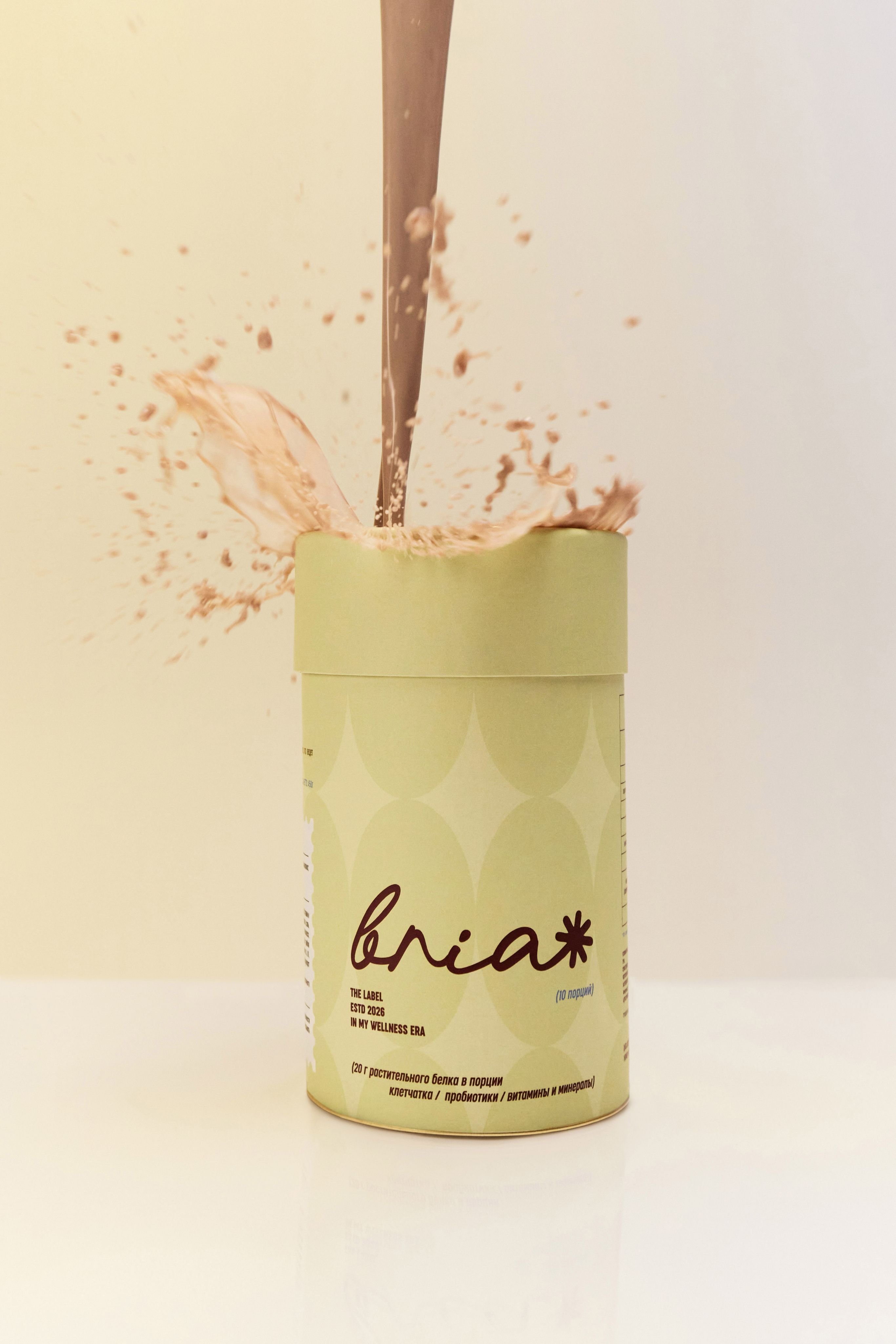 Сухая высокобелковая смесь со вкусом шоколада, обогащенная витаминами.